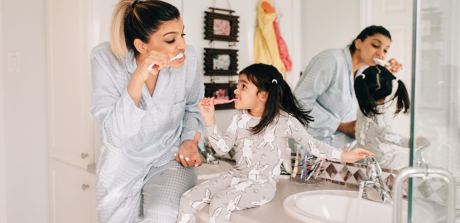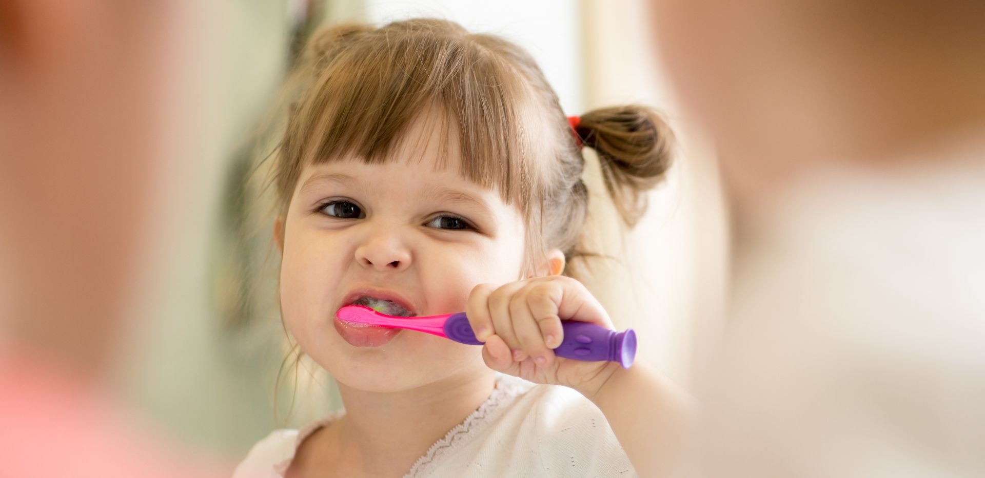 При появата на млечните зъби използвайте паста за зъби с флуорид с размер на капчица (не по-голяма от оризово зърно) за миене на зъбите два пъти дневно.